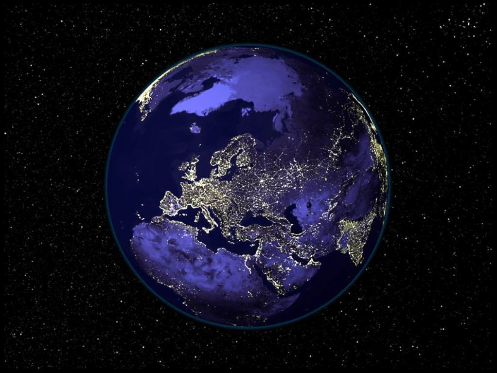 Night arrives over Europe and Northern Africa